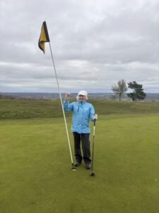 ‘One hop and in it went’ said Colin who in true tradition provided a tipple at the 19th. Thanks, Colin and here’s to your next one.